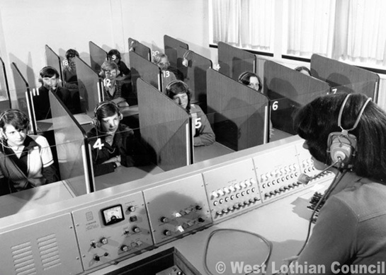 This photograph shows a languages class taking place at Craigshill High School around 1972.