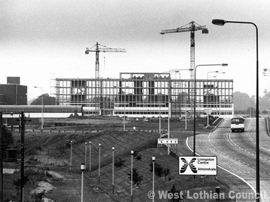 This photograph shows the construction of Sidlaw House (now West Lothian House) at Almondvale.